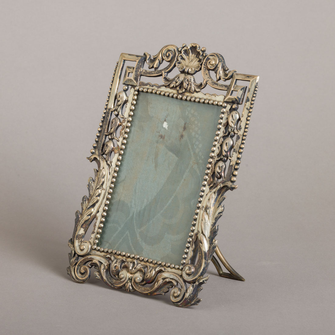Moldura em prata portuguesa contraste águia (1938-1984) de 833, decoração relevada e vazada elementos vegetalistas, enrolamentos e concheados. Sinais de uso.