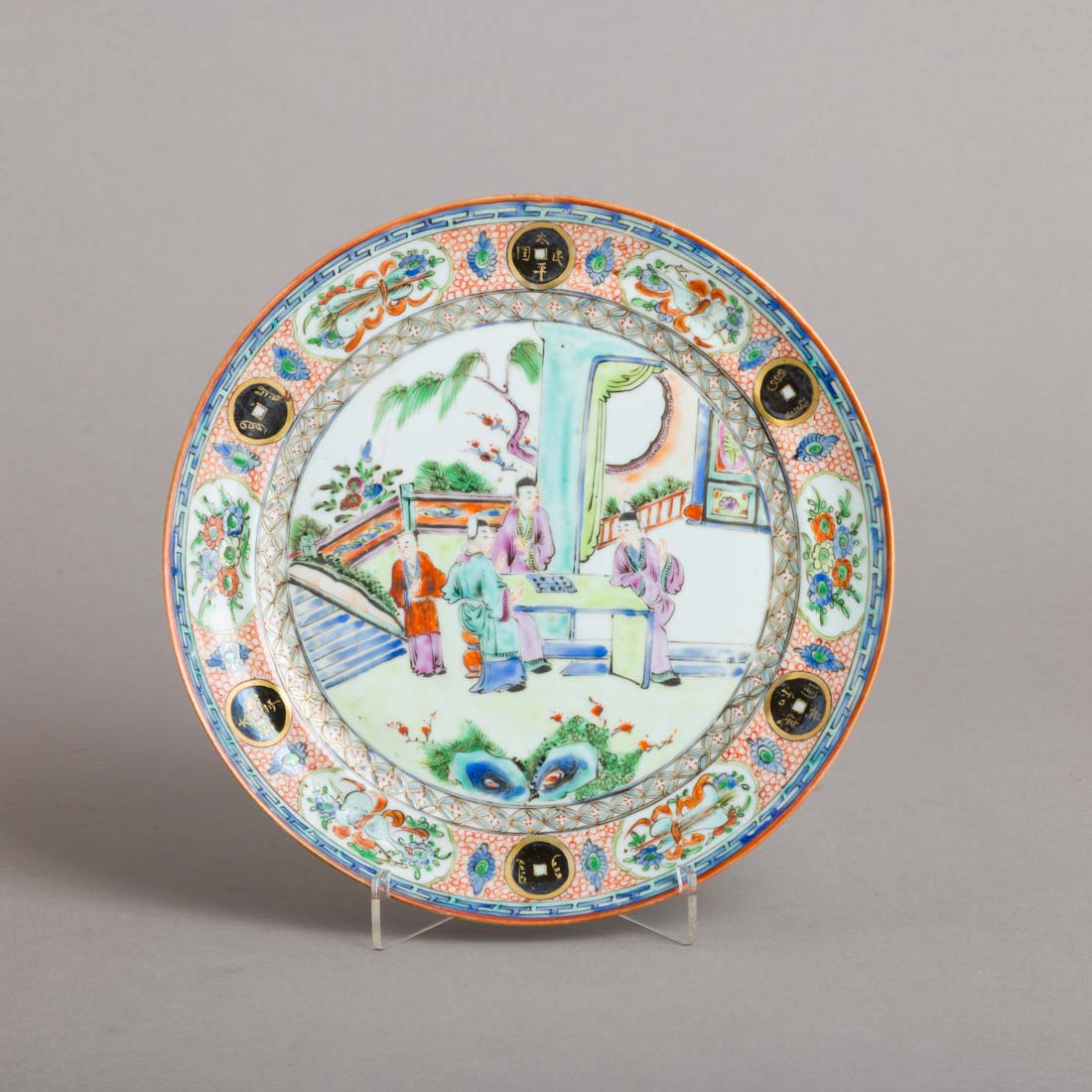 Em porcelana da China, decoração policromada e dourada