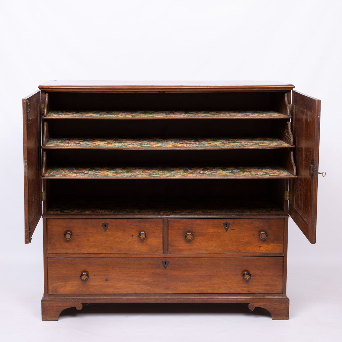 Em vinhático de três gavetas e duas portas. Séc. XIX. Defeitos e pequenas falhas.