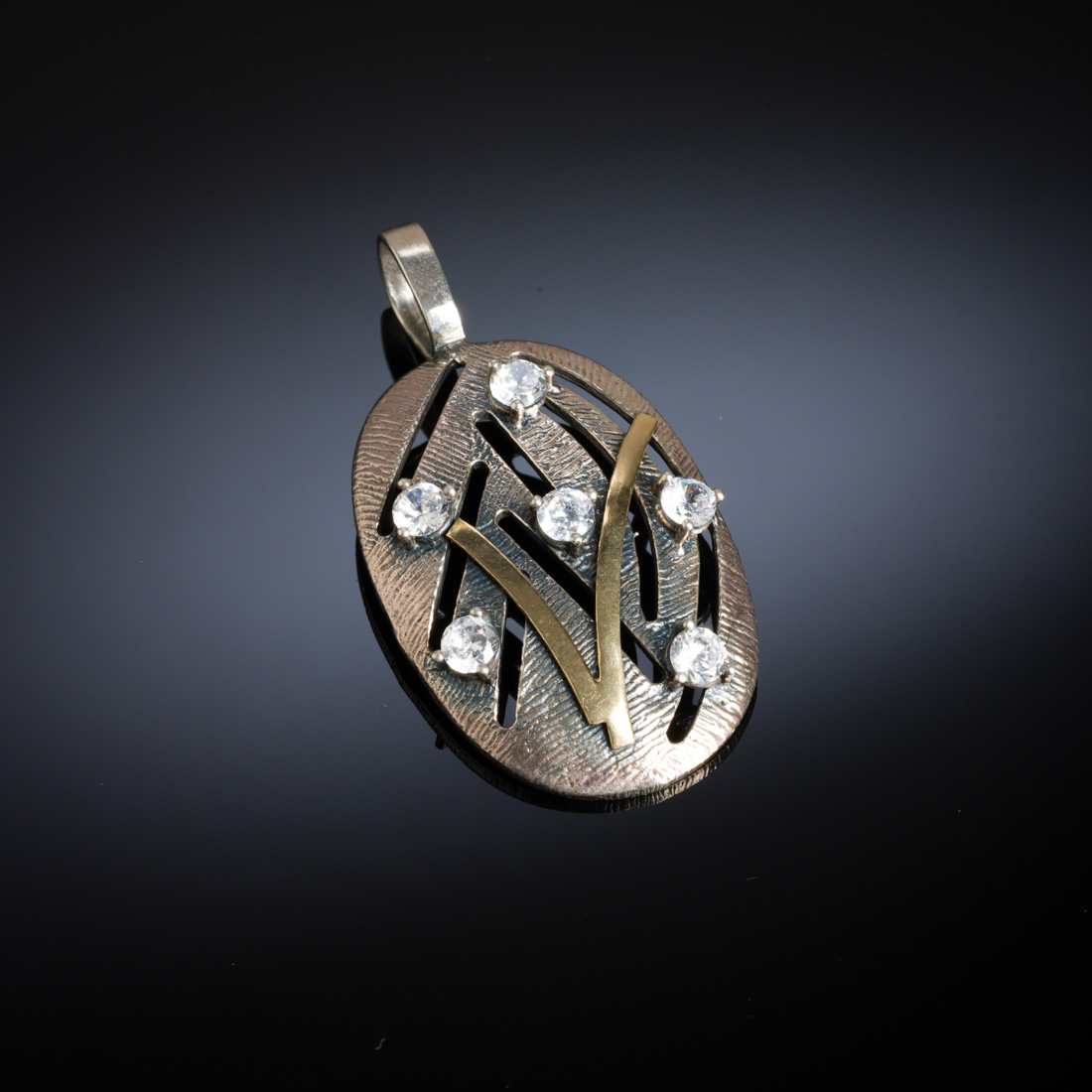 Em prata portuguesa contraste águia de 925 e ouro de 9Kt., contraste andorinha (pós 1985), cravejado com zircónias. Sinais de uso.