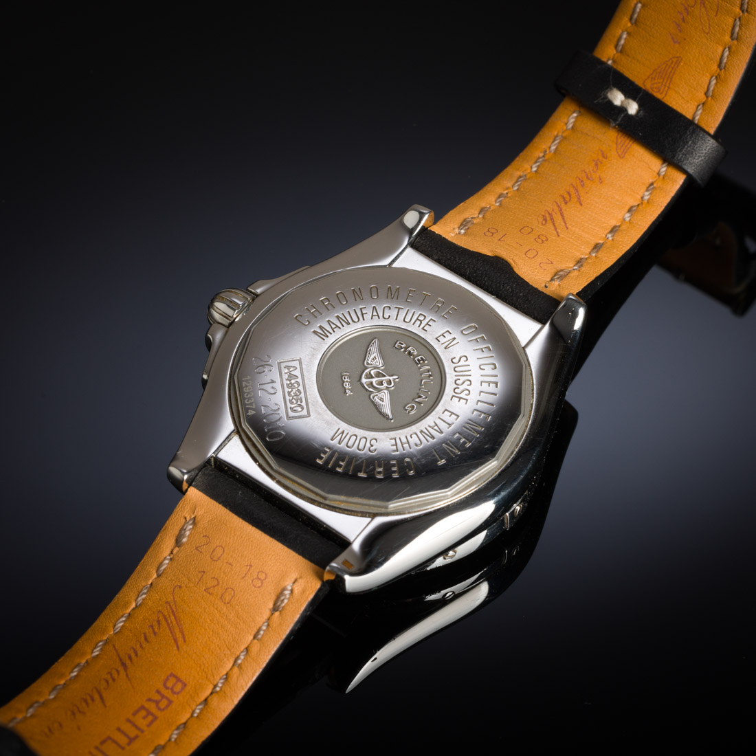 Suíço. Caixa em aço e bracelete original em pele, refª A49350L2/BA07. Movimento automático. Em marcha. Com caixa e documentos originais. Sinais de uso.