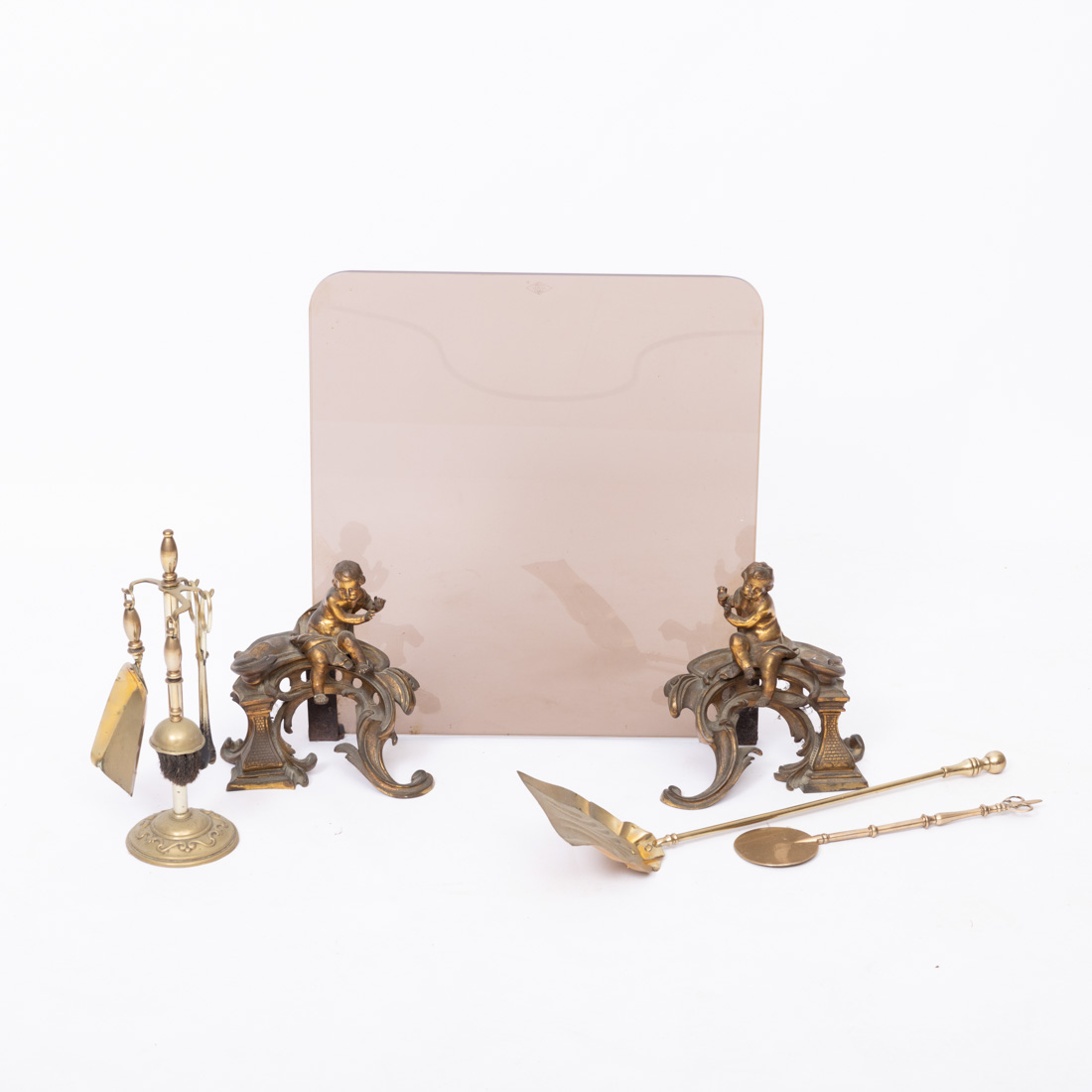 Em vidro fumado e metal amarelo, pés relevados "meninos sentados". Sinais de uso, pequenos defeitos.