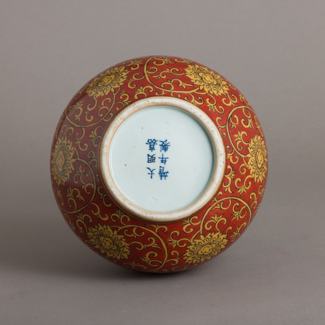 Em porcelana da China, decoração policromada "elementos vegetalistas". Marcada. Sinais de uso.