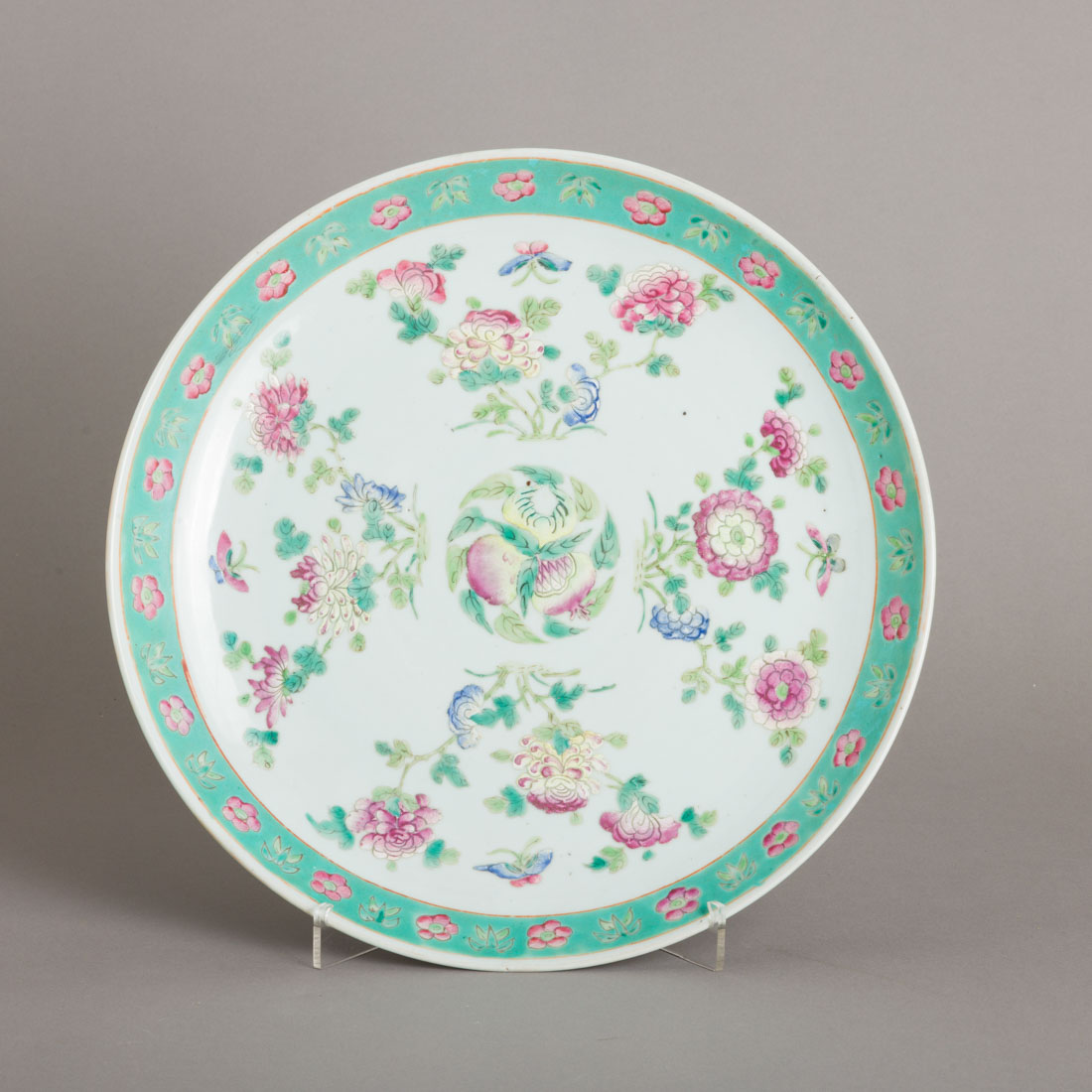Em porcelana da China, decoração policromada "flores, frutos e insectos". Sinais de uso.