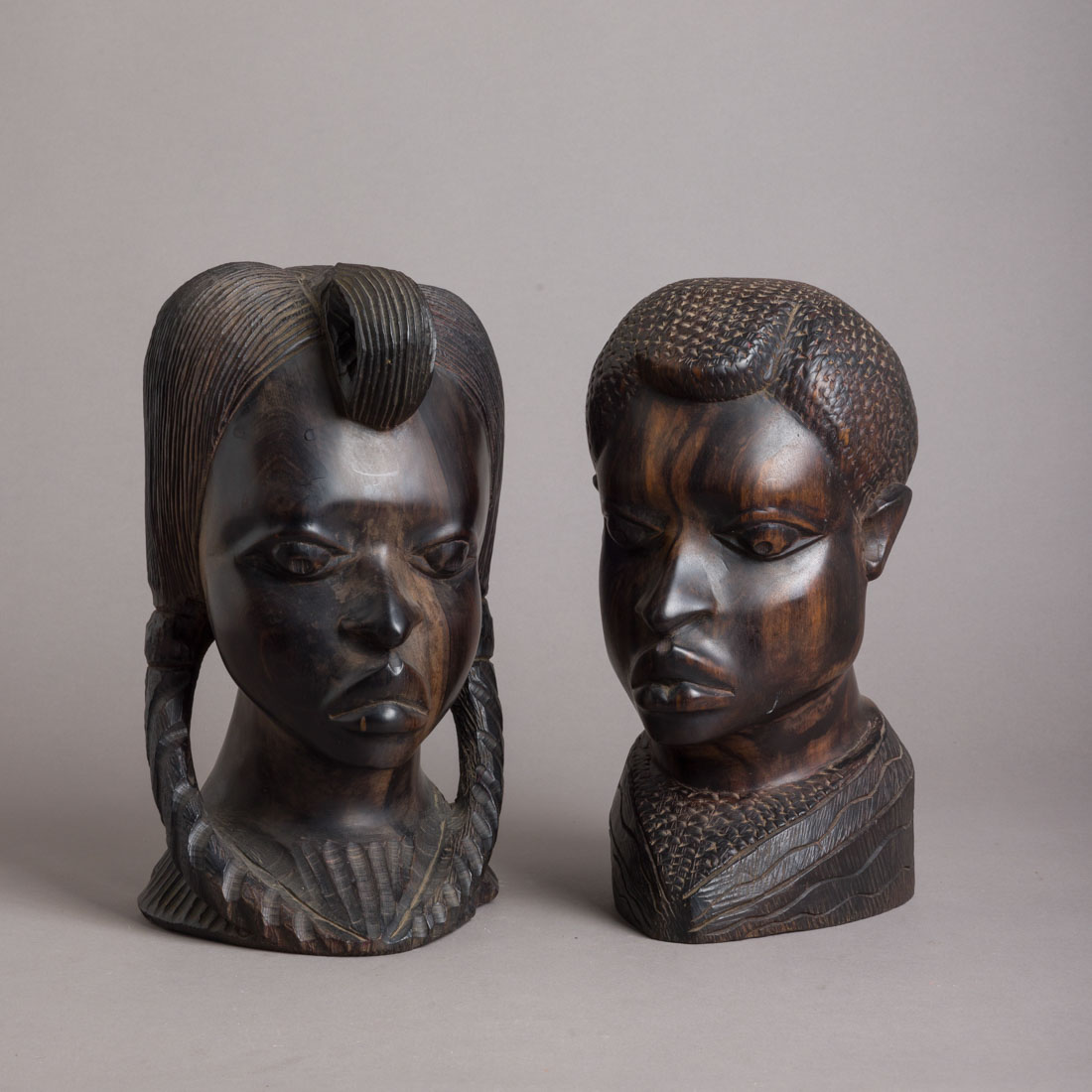 Esculpidos em ébano. Africanos. Sinais de uso, um com falha na base.