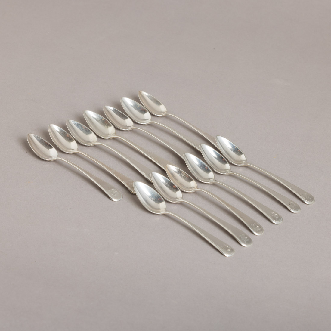 Em prata portuguesa contraste javali (1887-1937) de 833, monogramadas. Algumas sem marcas, ao abrigo do Decreto-Lei n.º 120/2017. sinais de uso.