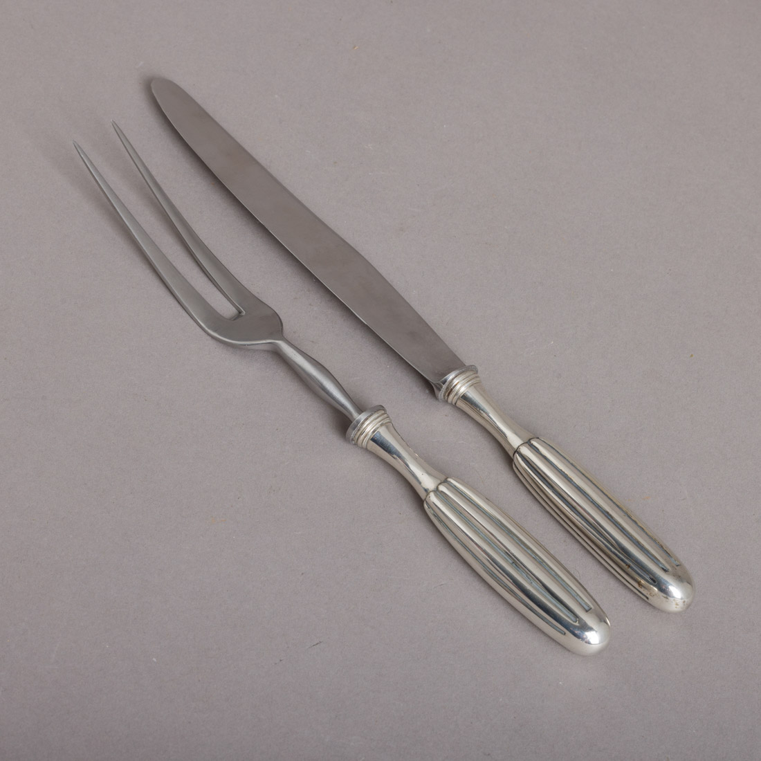 Cabos em prata portuguesa contraste águia (1938-1984) de 833, decorado com gomados. Sinais de uso.