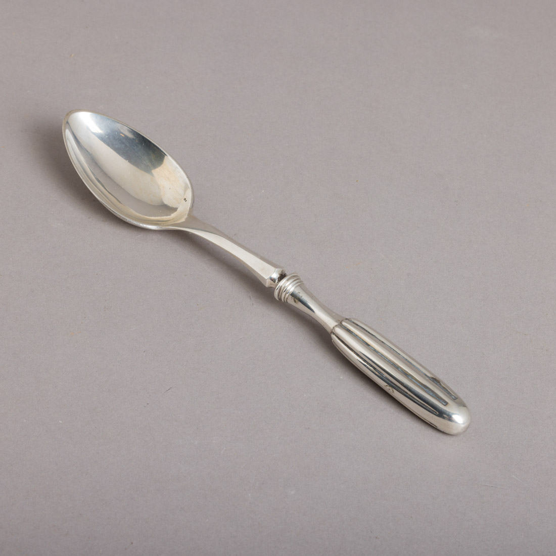 Em prata portuguesa contraste águia (1938-1984) de 833, cabo decorado com gomados. Sinais de uso.
