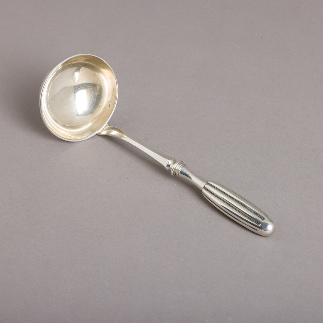 Em prata portuguesa contraste águia (1938-1984) de 833, cabo decorado com gomados. Sinais de uso.