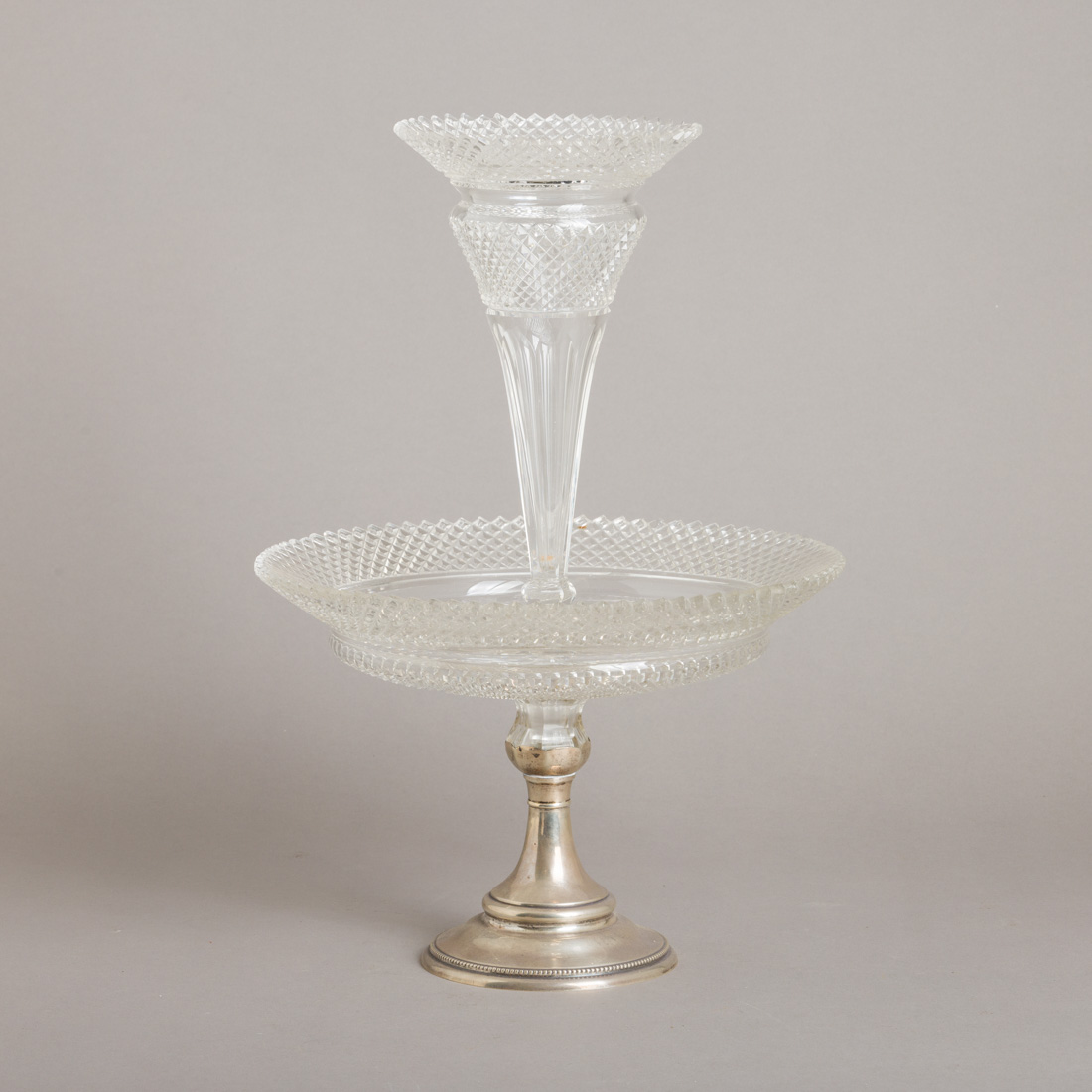 Em cristal moldado e lapidado "ponta de diamante", pé em prata sem marcas, ao abrigo do Decreto-Lei n.º 120/2017. Pequenas esbeiçadelas.