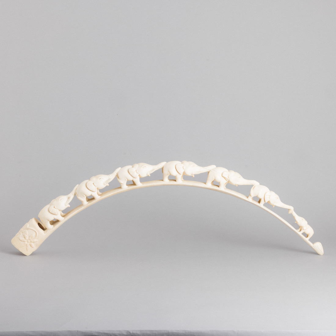 Presa em marfim esculpido e vazado. África. Séc. XX. Sinais de uso e pequenas falhas