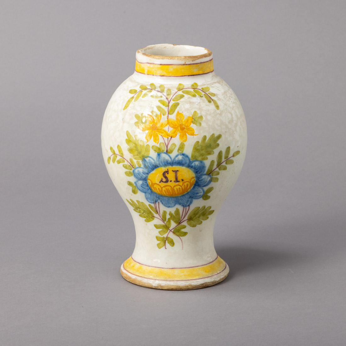 Em faiança portuguesa, possivelmente de Viana, decoração policromada com motivos florais. Desgaste no vidrado e esbeiçadelas.