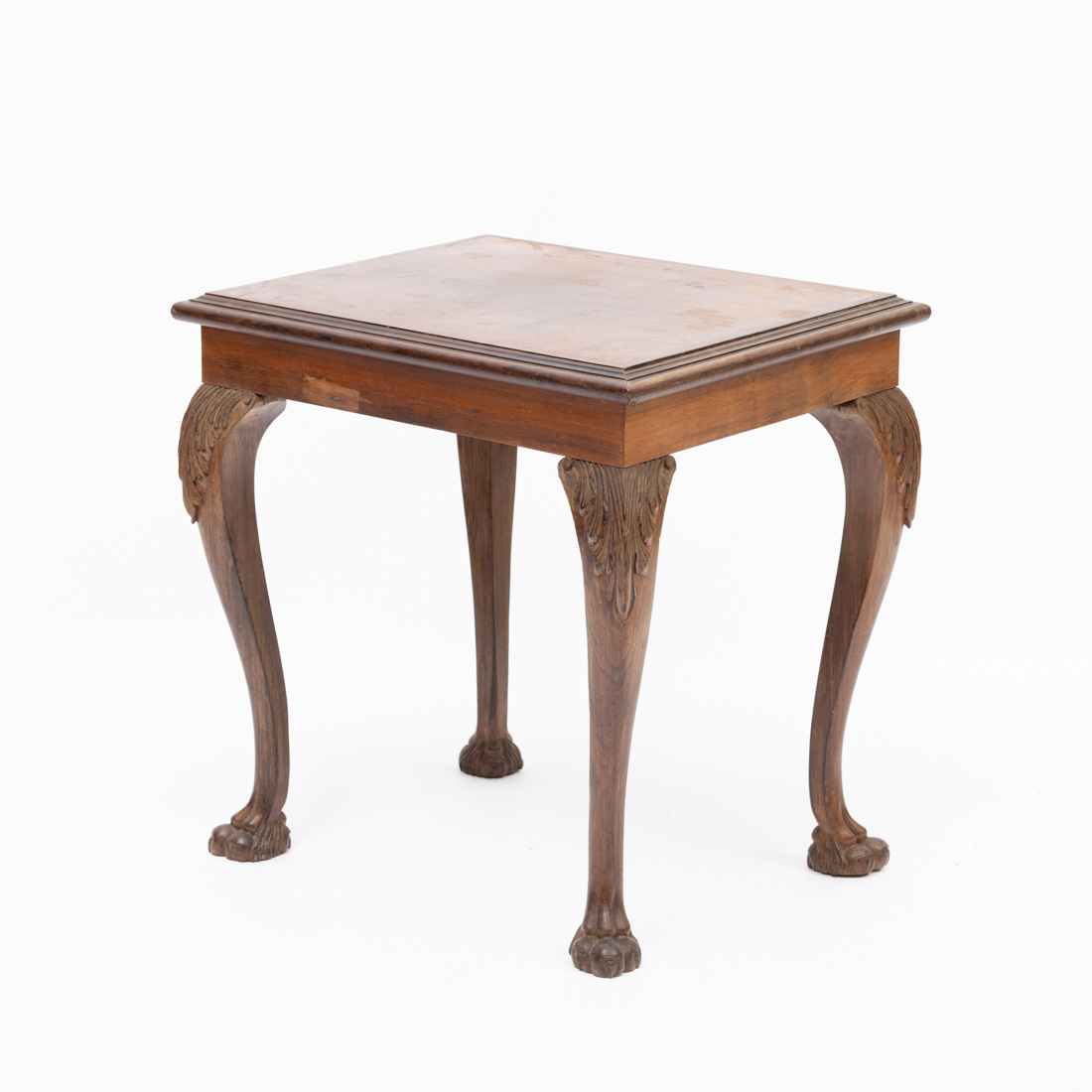 Em pau santo e outras madeira, pernas com entalhamentos. Pequenas falhas e defeitos.