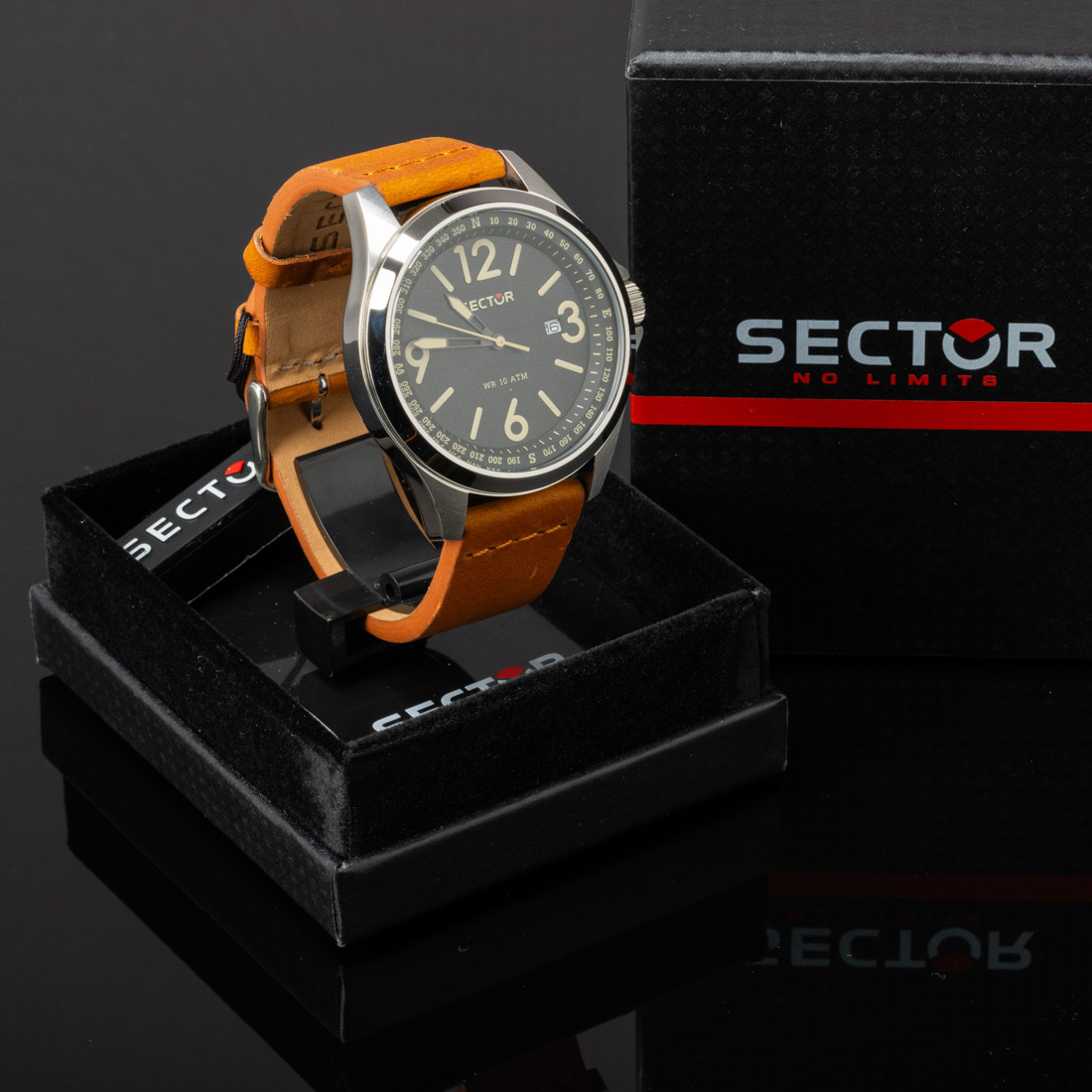 Caixa em aço, mostrador de fundo negro, movimento a quartzo. Em marcha. Caixa original e documentos.