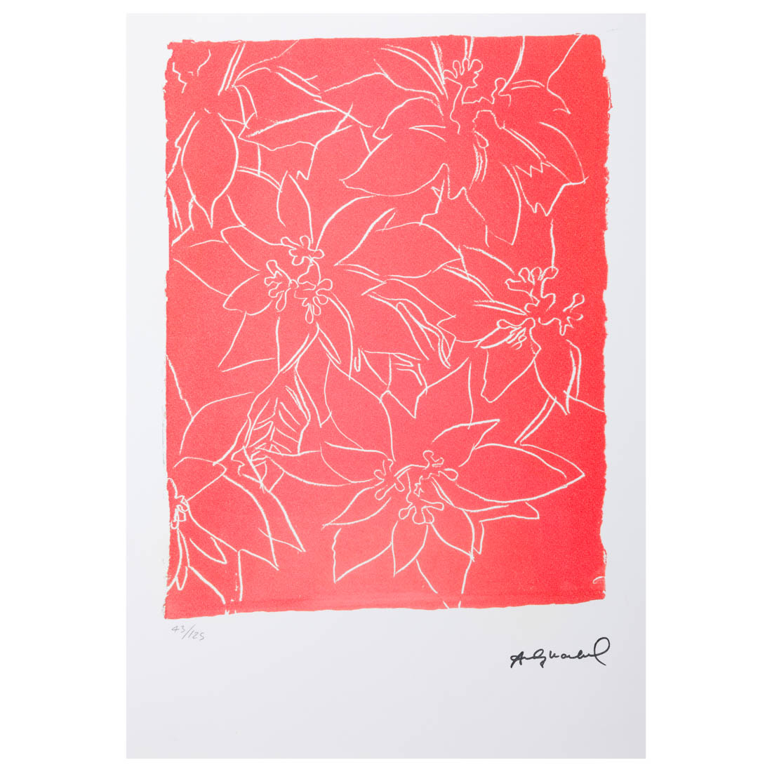 Litografia colorida sobre papel (43/125), assinada por impressão. Com selo branco "Andy Warhol" e carimbo no verso com assinatura. Com certificado. Não emoldurada.