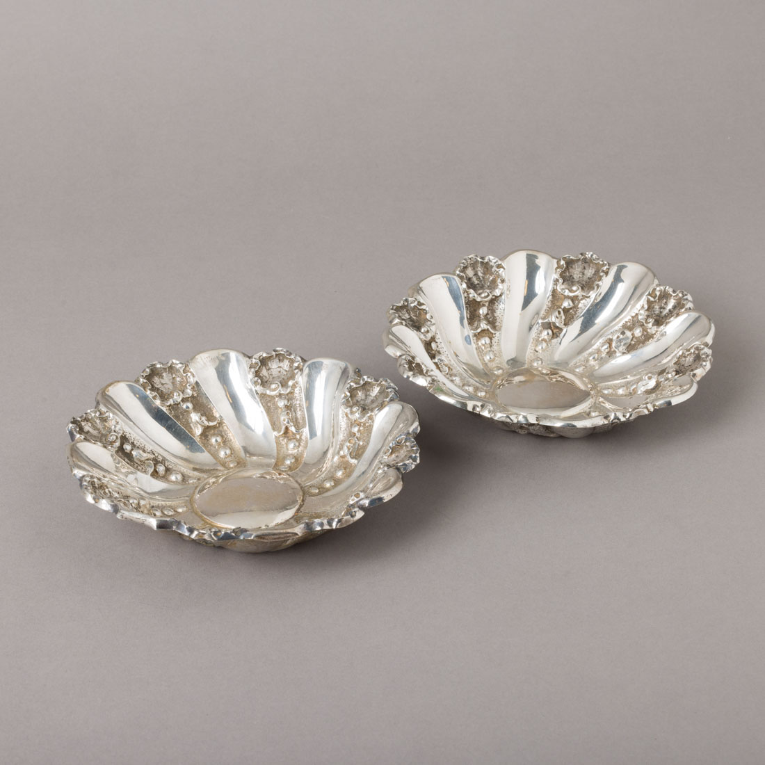 Em prata portuguesa contraste águia (1938-1984) de 833, decoração relevada e gomada "concheados". Amolgadelas.