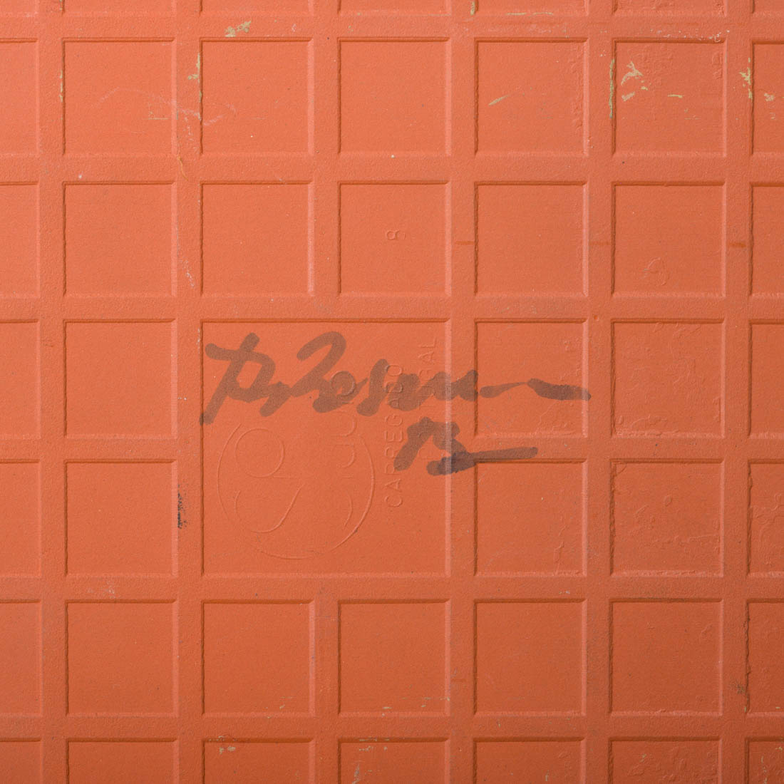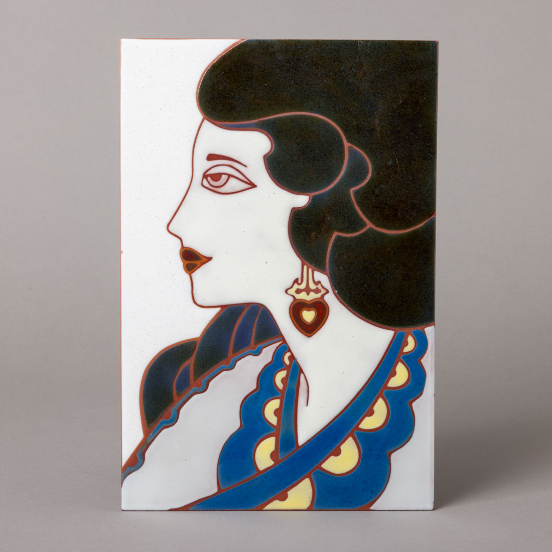 Em cerâmica vidrada, decoração policromada, assinado no verso. Sinais de uso.
