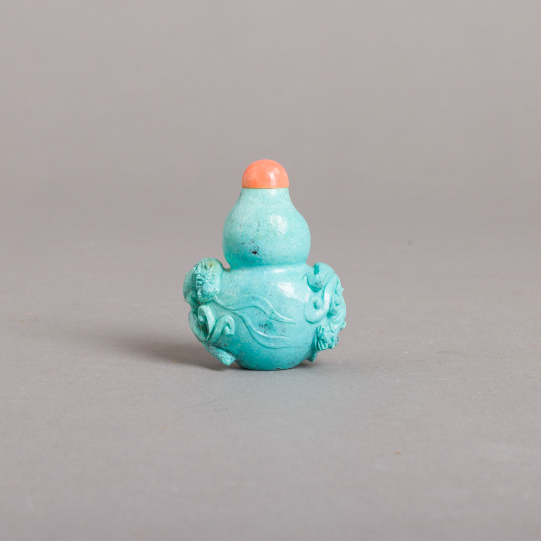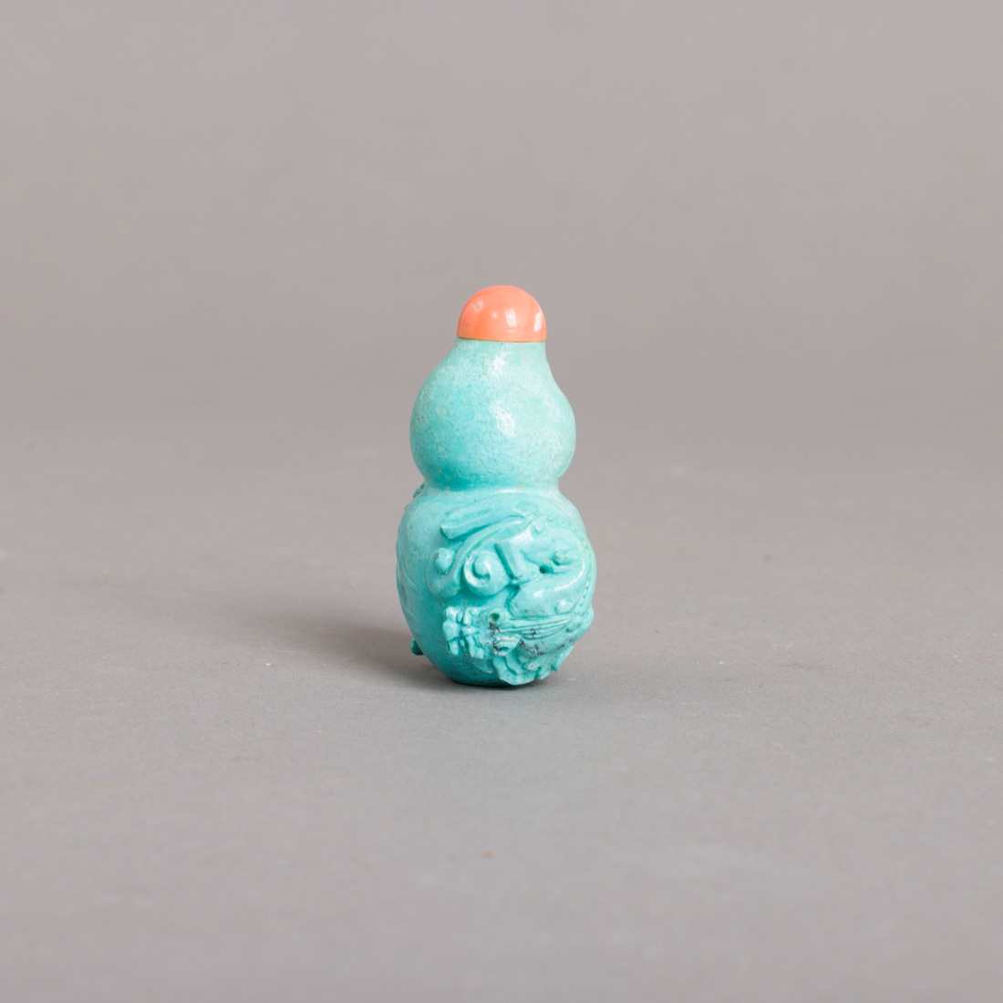 Em turquesa, decoração relevada "dragões", tampa em tom coral. Chinês. Sinais de uso.