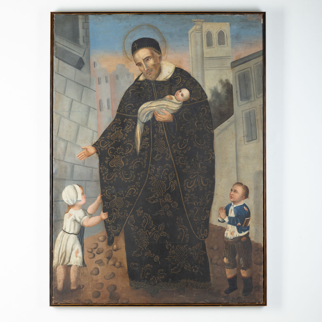 Óleo sobre tela. Escola europeia, Séc. XIX. Reentelado, falhas e restauros.