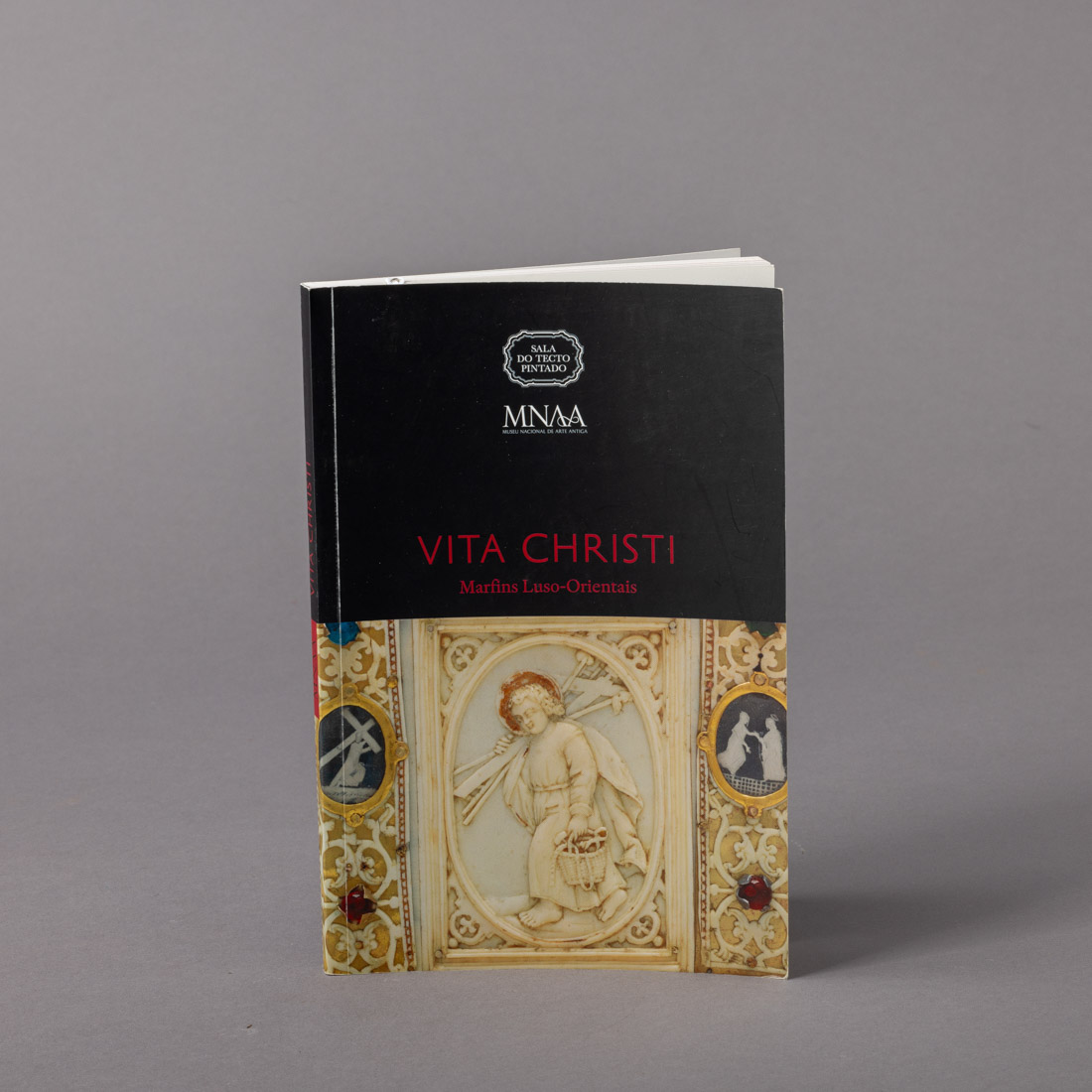 Este catálogo pretende divulgar uma das linhas essenciais da pesquisa em curso sobre e produção asiática de imagens em marfim e a sua relação com os diferentes modelos que as inspiraram, Apresentando como peça central um Crucifixo com Calvário. Museu Nacional de Arte Antiga. Sinais de uso.