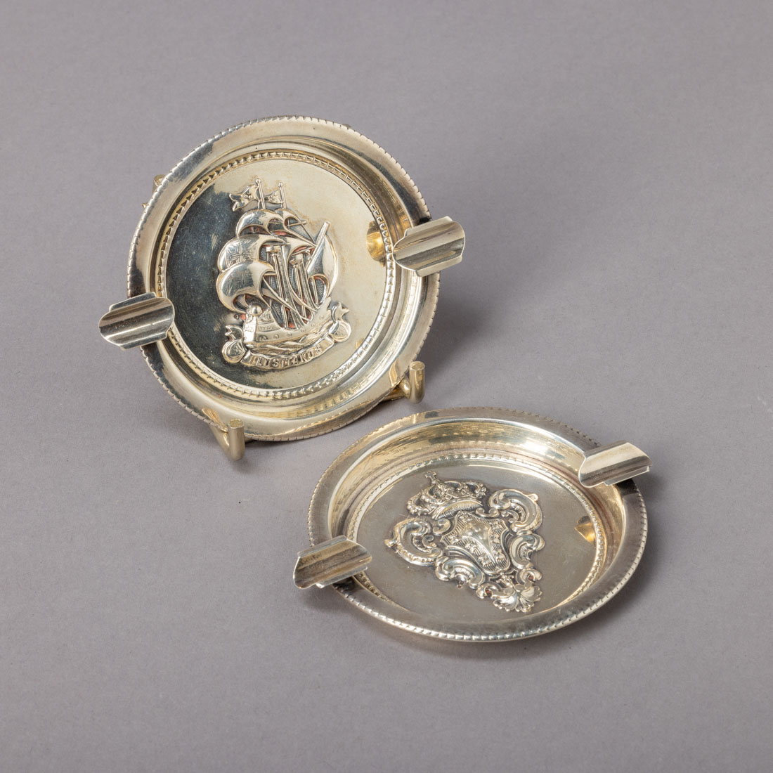 Em prata portuguesa contraste águia (1938-1984) de 833, decoração relevada "Caravela" e Armas de Portugal". Sinais de uso.