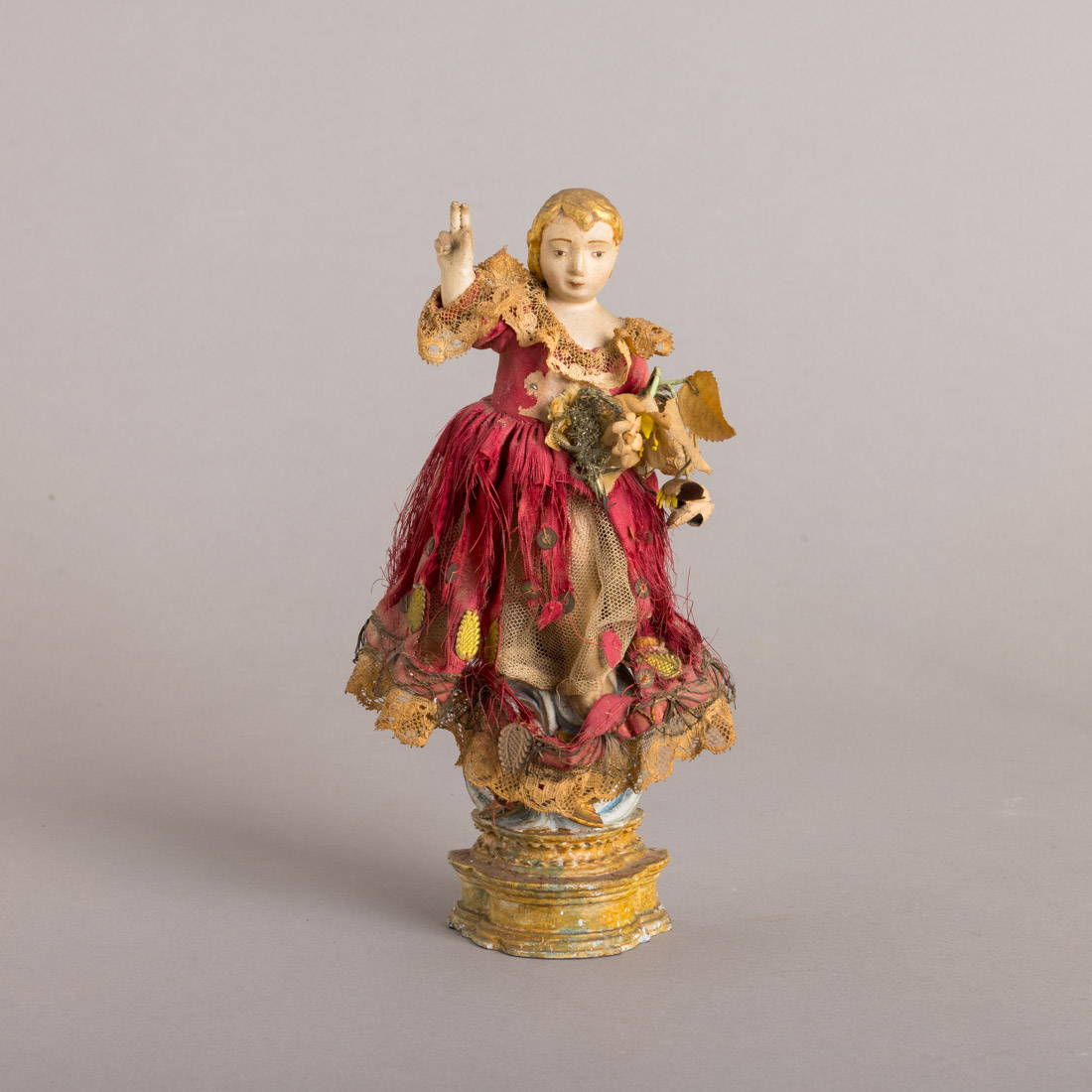 Escultura em madeira policromada e dourada, Séc. XIX. Pequenas falhas e defeitos. Vestido com falha e defeitos.