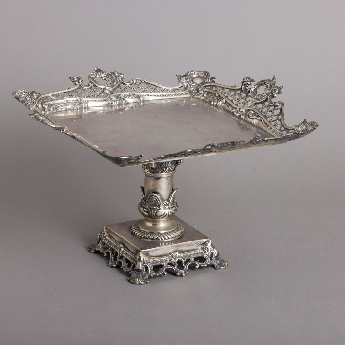 Em prata portuguesa contraste águia (pós 1985) de 835, decoração relevada e vazada com enrolamentos e elementos vegetalistas. Sinais de uso.
