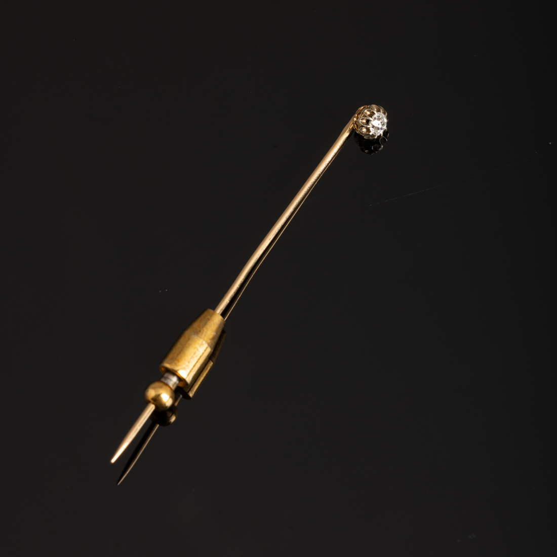 Em ouro português de 19.2Kt., contraste tigre (1887-1937) e prata cravejado com diamante em talhe de brilhante. Sinais de uso.
