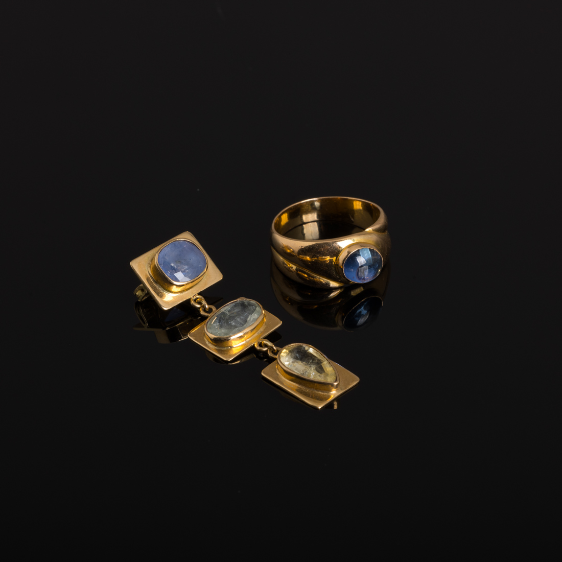 Em ouro de baixo teor cravejado com safiras. Sem marcas, ao abrigo do Decreto-Lei n.º 120/2017. Sinais de uso.