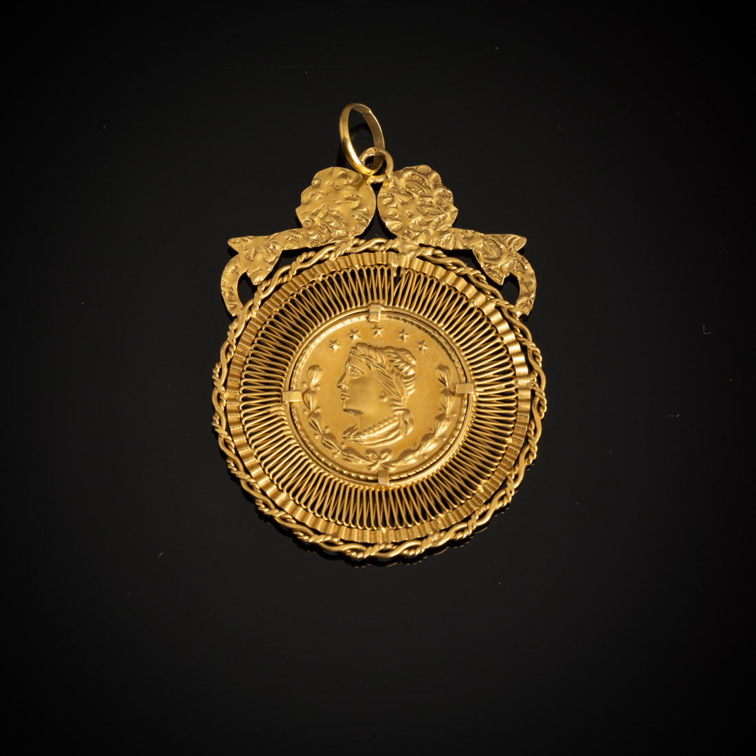 Em ouro português de 19,2Kt., contraste veado (pós 1985), decoração relevada e vazada. Sinais de uso.
