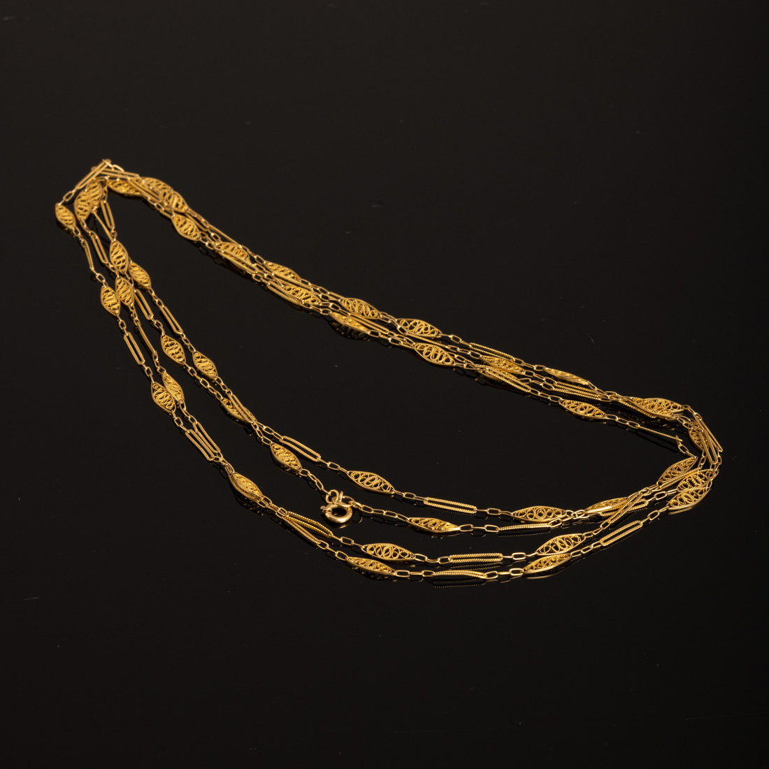 Em ouro e filigrana de ouro português de 19,2Kt.., contraste veado (pós 1985). Sinais de uso, leves amolgadelas.
