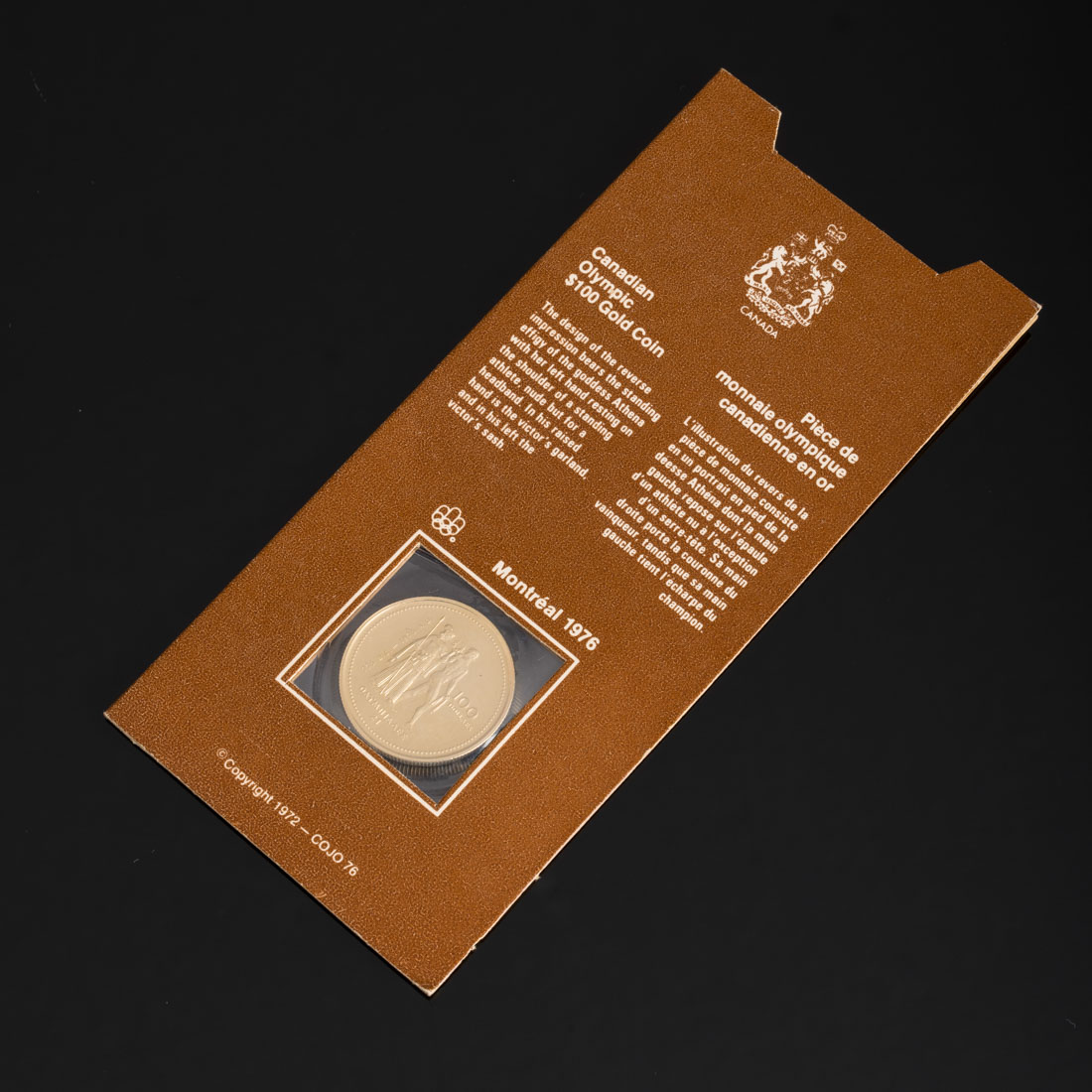 Em ouro de 14Kt., dos Jogos Olímpicos de Verão - Montreal 1976. Estojo original.