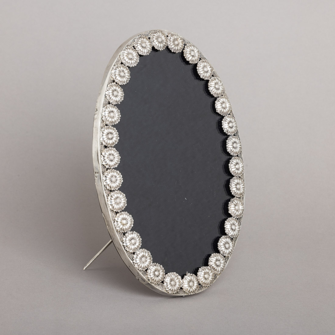 Moldura em prata portuguesa contraste javali (1887-1937) de 833, decoração relevada "margaridas". Sinais de uso e pequenos defeitos.