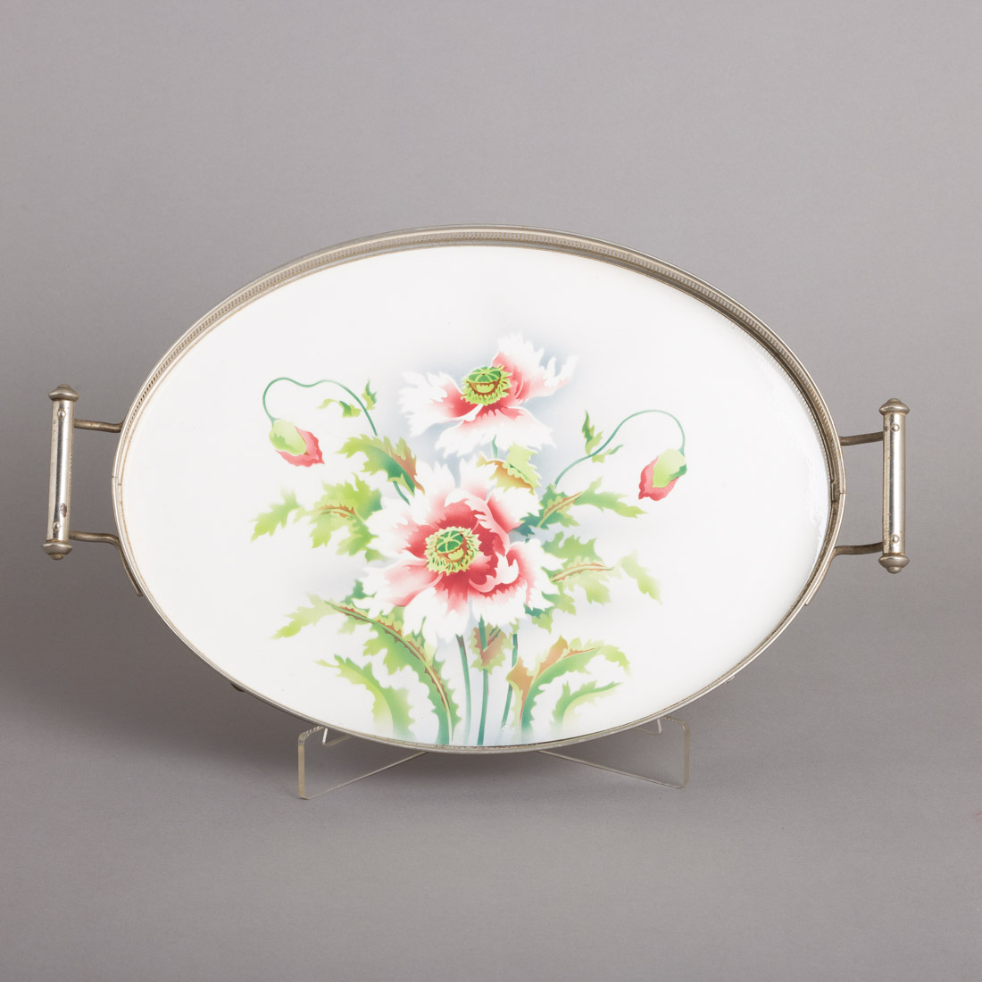 Em cerâmica vidrada decoração policromada "flores", gradinha vazada em metal. Sinais de uso e pequenas oxidações.