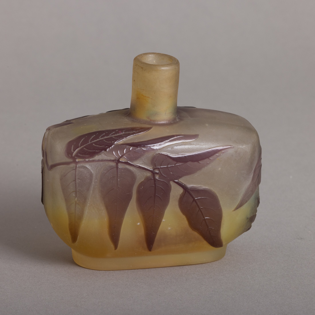 Em pasta de vidro, decoração relevada "flores e folhagem", assinada. Sinais de uso.