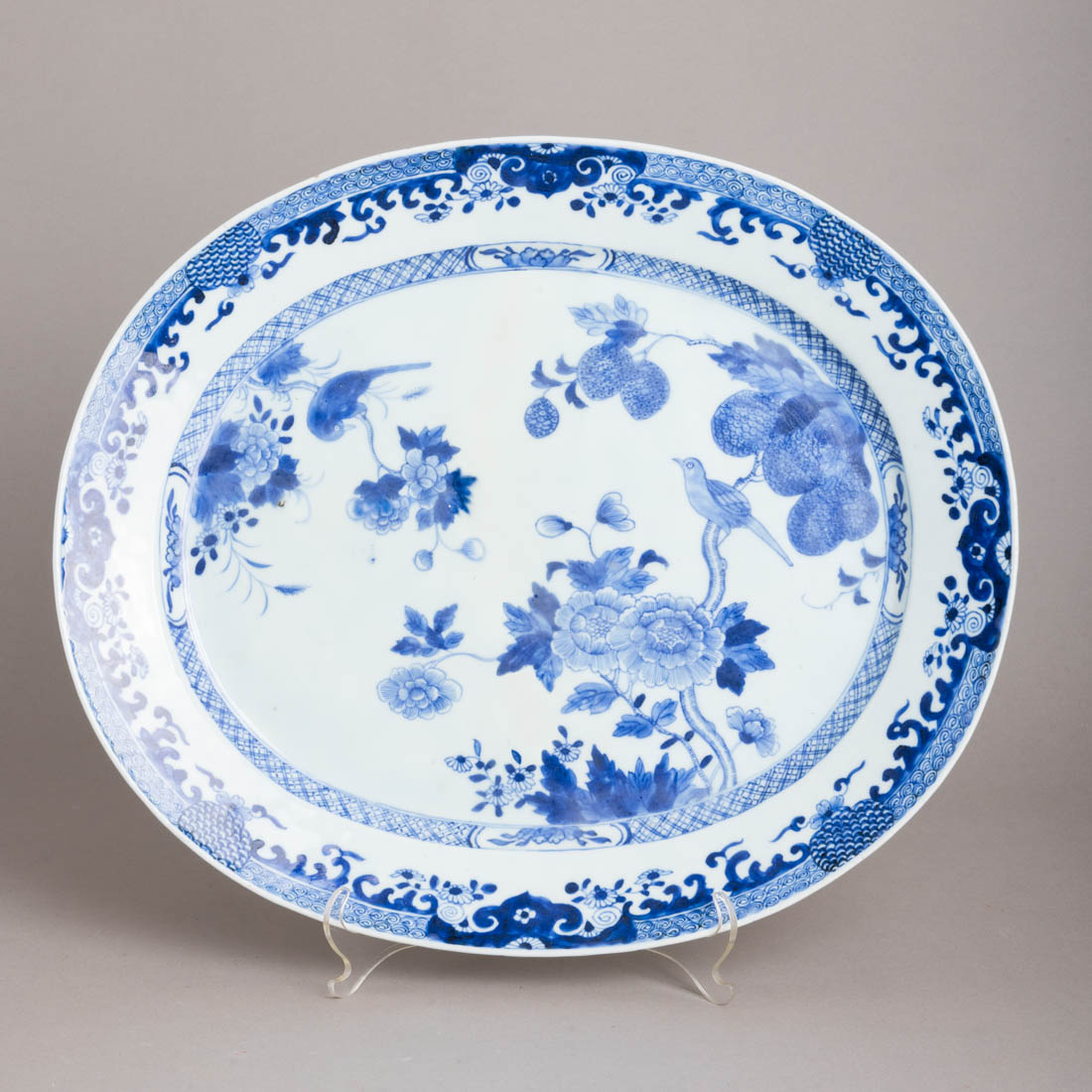 Em porcelana da China, Séc. XVIII, decoração a azul "flores" Restauros.