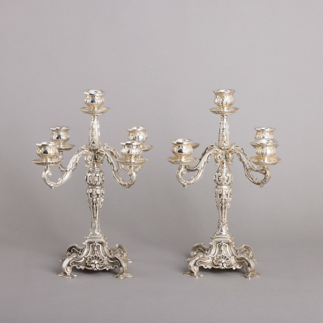 586. PAR DE CANDELABROS DE CINCO LUMES