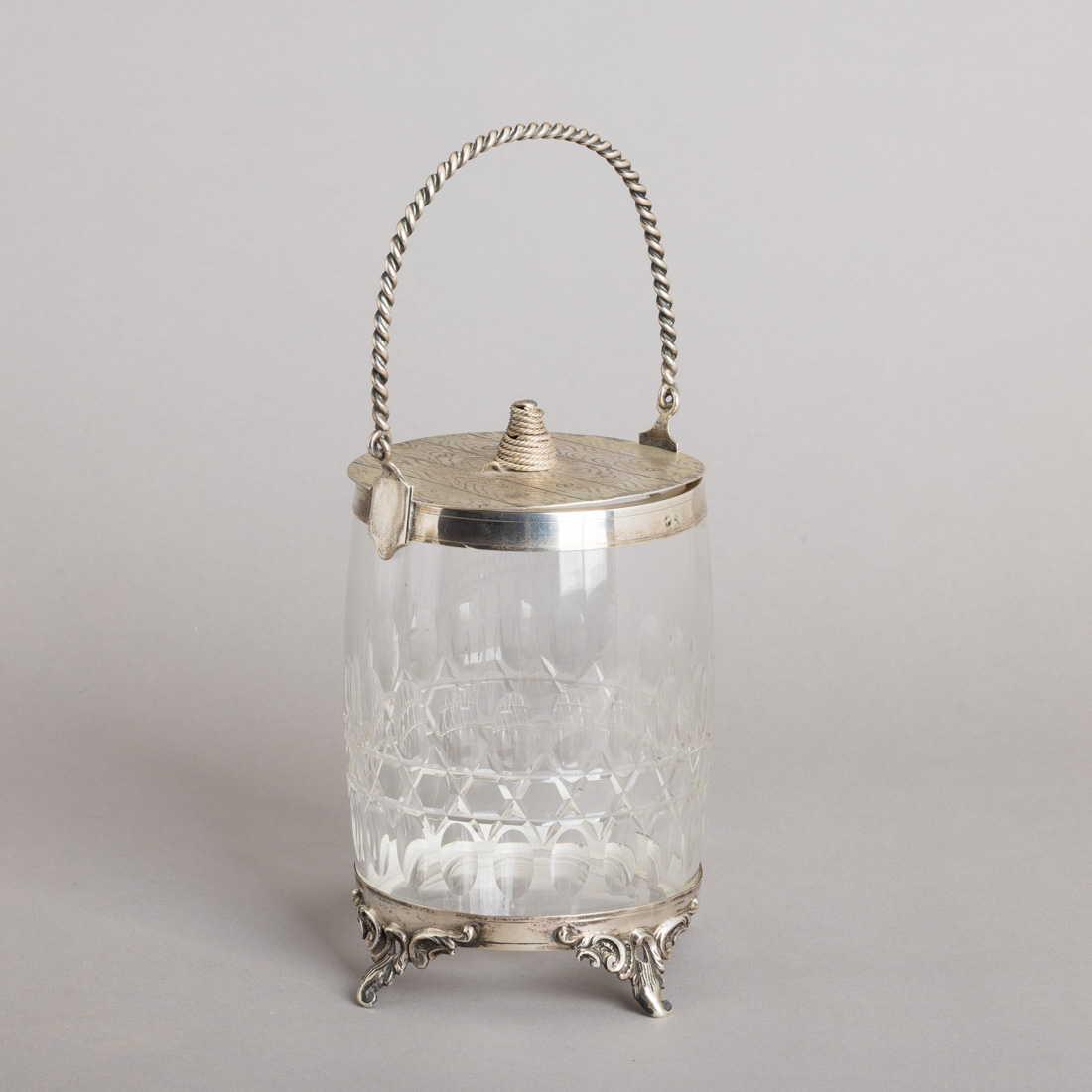 Em cristal, armação em prata portuguesa contraste javali (1887-1937) de 833, decoração relevada. Sinais de uso.