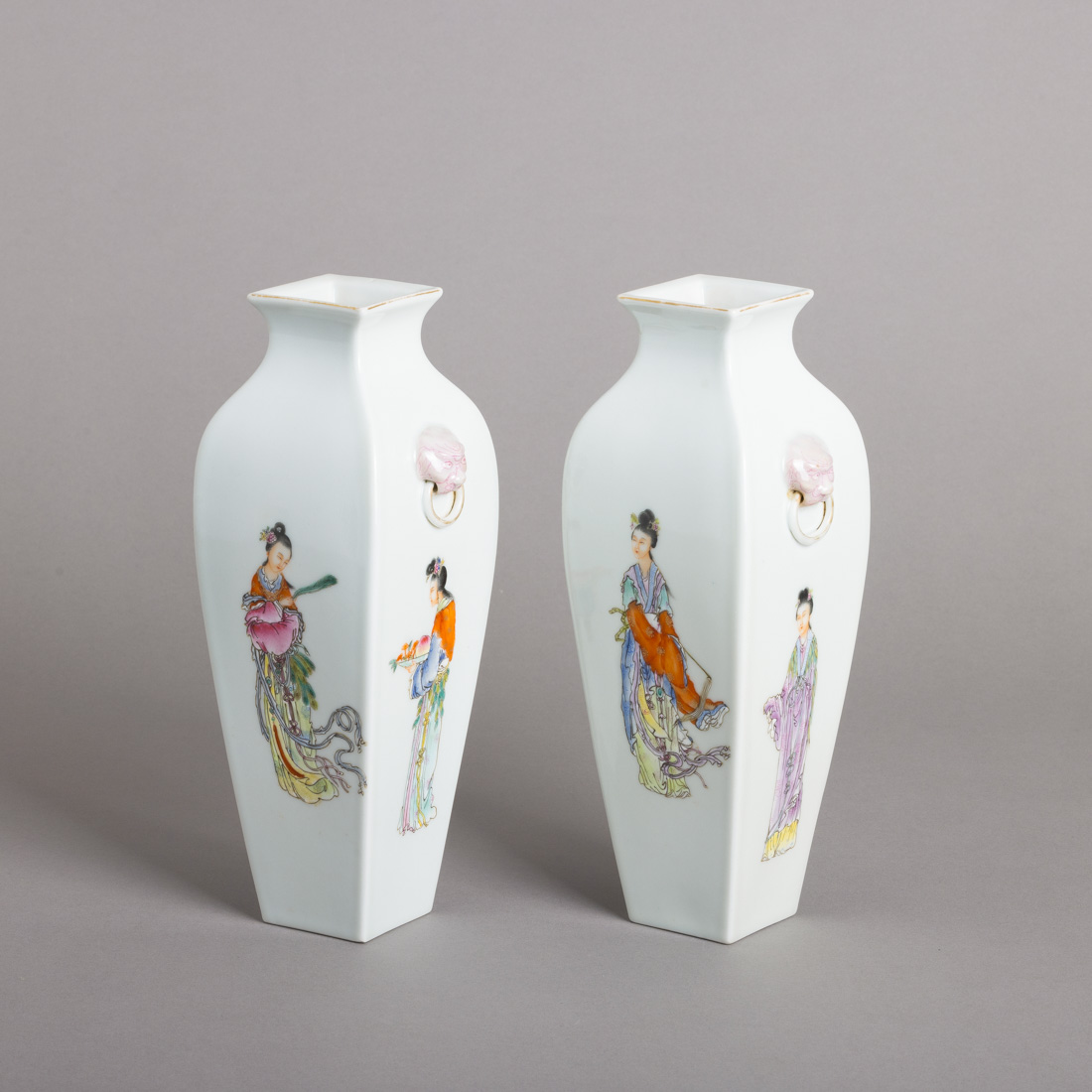 Em porcelana da China, decoração policromada e dourada "figuras femininas", pegas relevadas, marcada. Sinais de uso.
