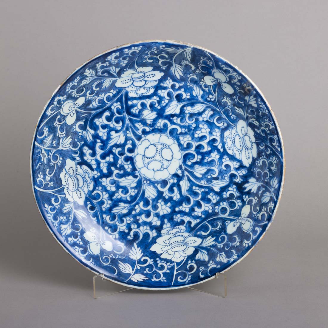Em porcelana da China, decoração a azul "flores". Falhas e desgaste no bordo, restaurado.