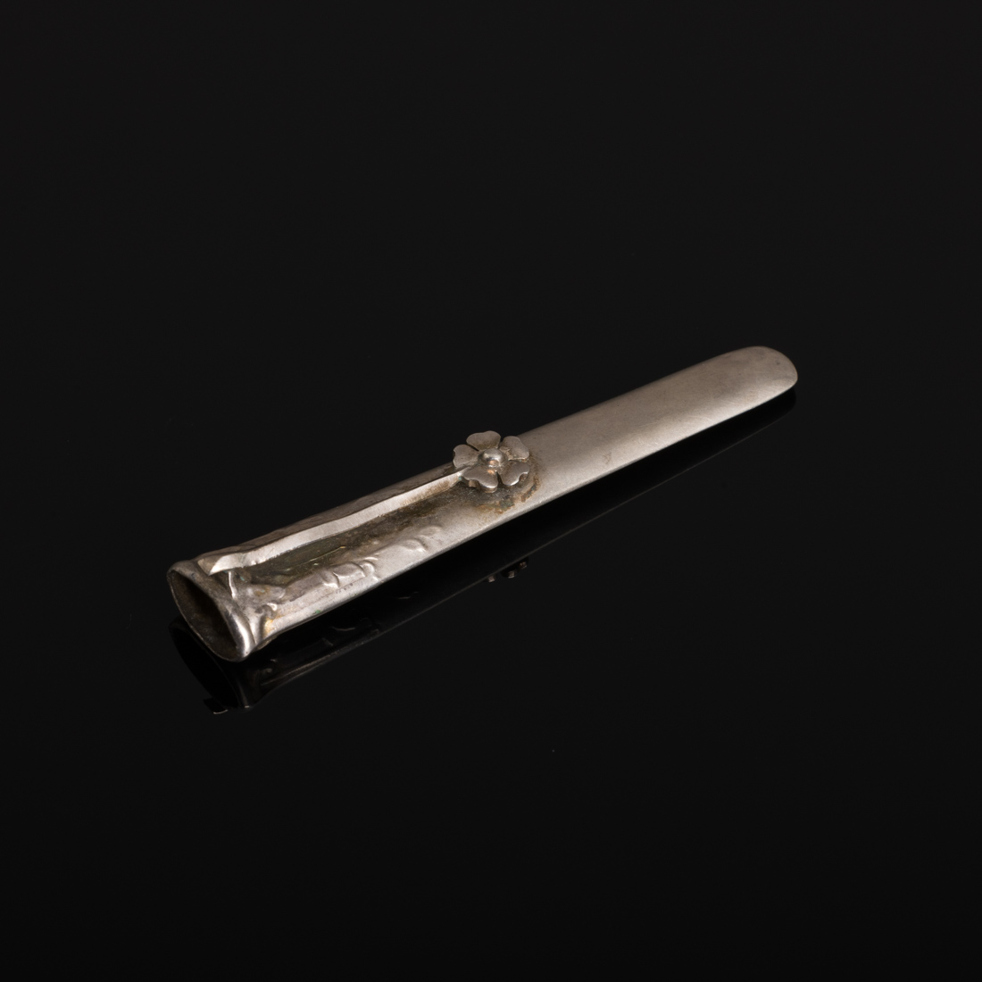 Em prata portuguesa contraste javali (1887-1937) de 833, decoração relevada "flores". Pequenas amolgadelas e soldadura.