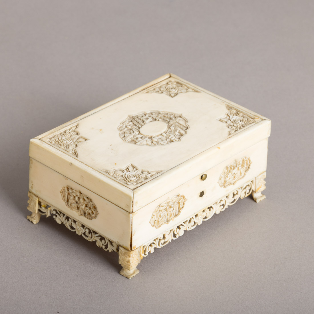 Em marfim esculpido e vazado com reservas "Figuras e flores",