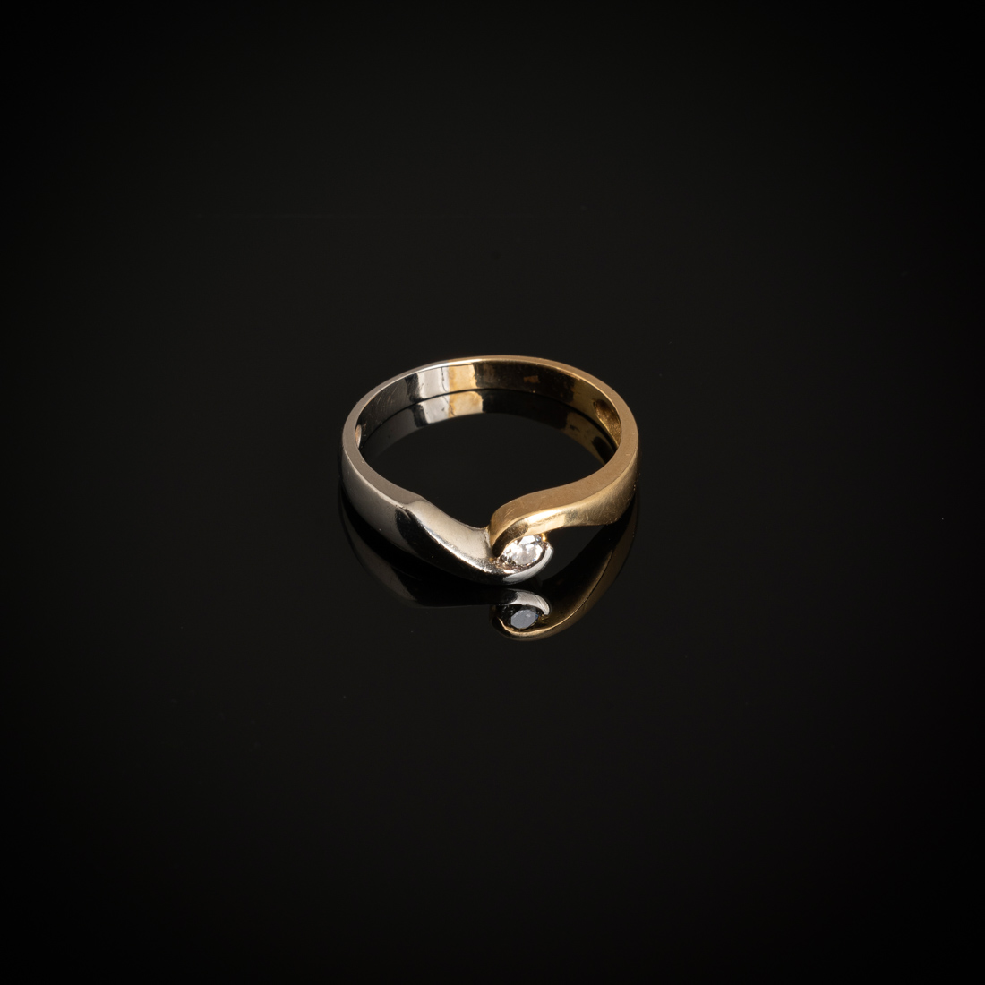 Em ouro bicolor português de 19,2Kt., contraste veado e galo (pós 1985) cravejado com diamante em talhe de brilhante. Sinais de uso.