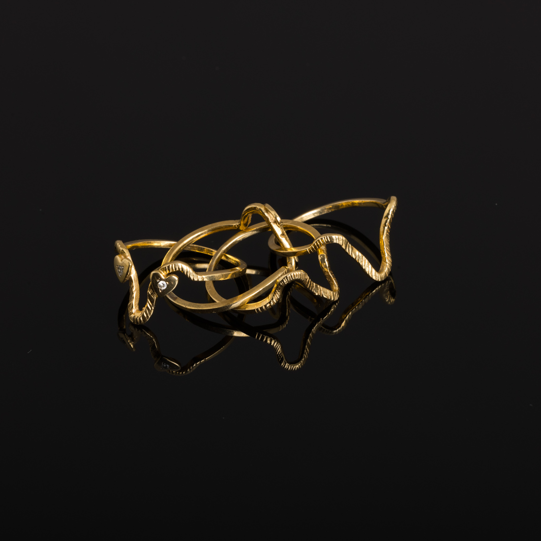 Em ouro de baixo teor cravejado com um diamante em talhe de brilhante. Sem marcas, ao abrigo do Decreto-Lei n.º 120/2017. Sinais de uso.