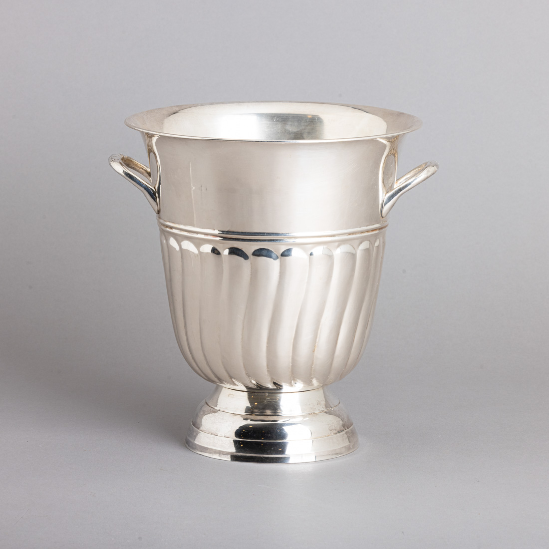 Em metal prateado, decoração gomada, pegas laterais. Sinais de uso.