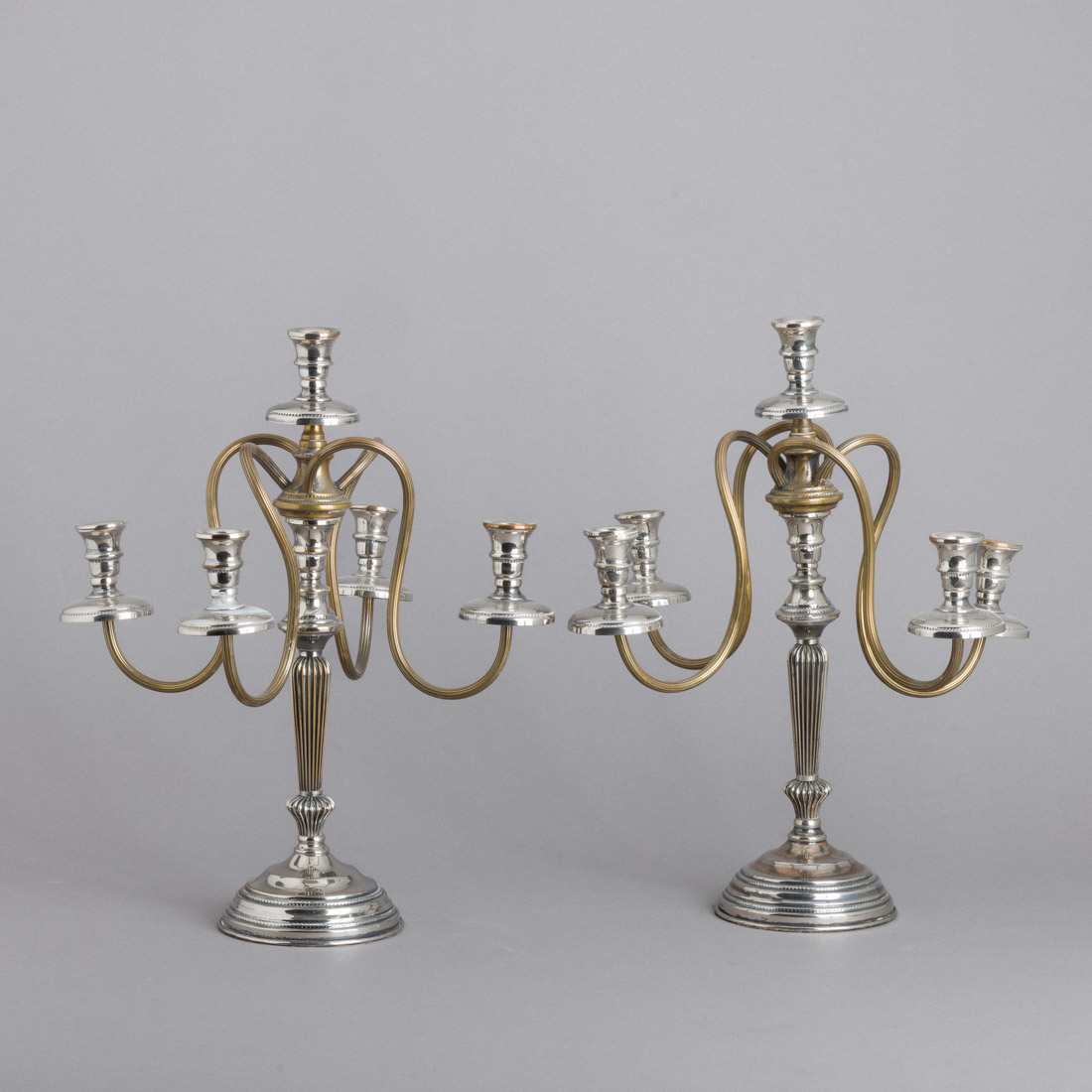 35. PAR DE CANDELABROS DE SERPENTINAS DE CINCO LUMES