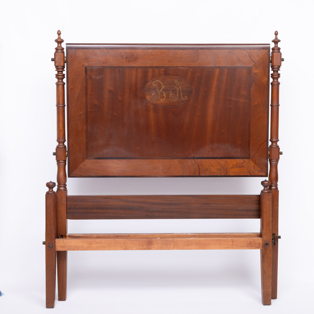 Estilo D. Maria, em pau santo e outras madeiras, com monograma "B.A." Sinais de uso e pequenos defeitos.