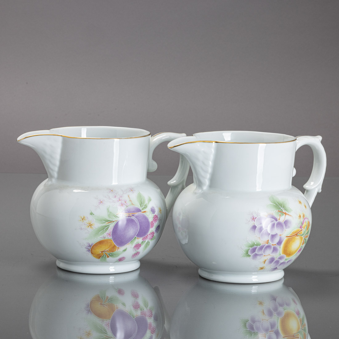 Em porcelana moldada (1980-1992), decoração policromada e dourada "frutos". Sinais de uso.