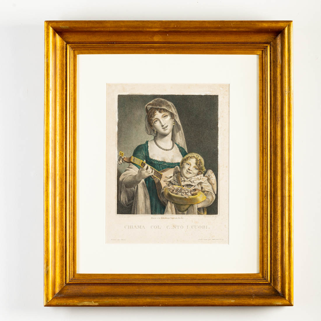 Gravura colorida sobre papel. Segundo original Louis-Marie Sicard, gravada por André Joseph Mecou. Séc. XVIII/XIX. Falhas e picos de acidez.