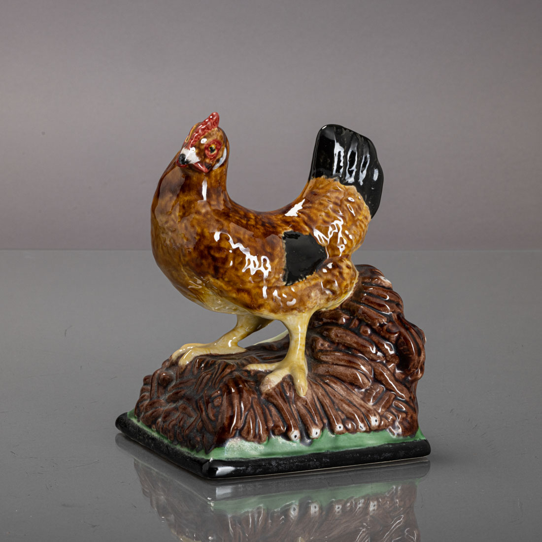 Escultura em cerâmica vidrada das Caldas, decoração naturalista. Séc. XX/XXI. Sinais de uso.